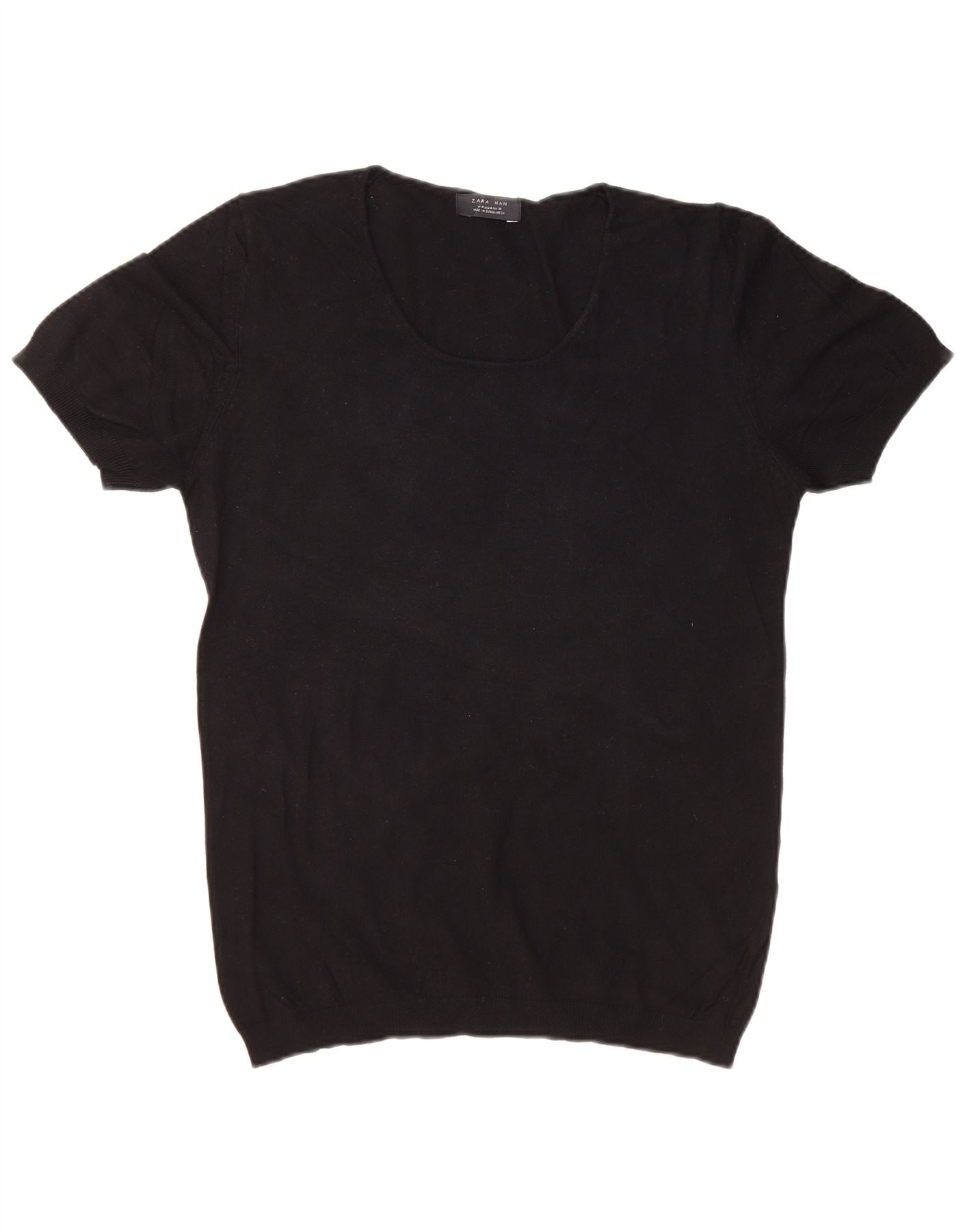 ZARA muški džemper kratkih rukava s brodskim izrezom srednje crne boje