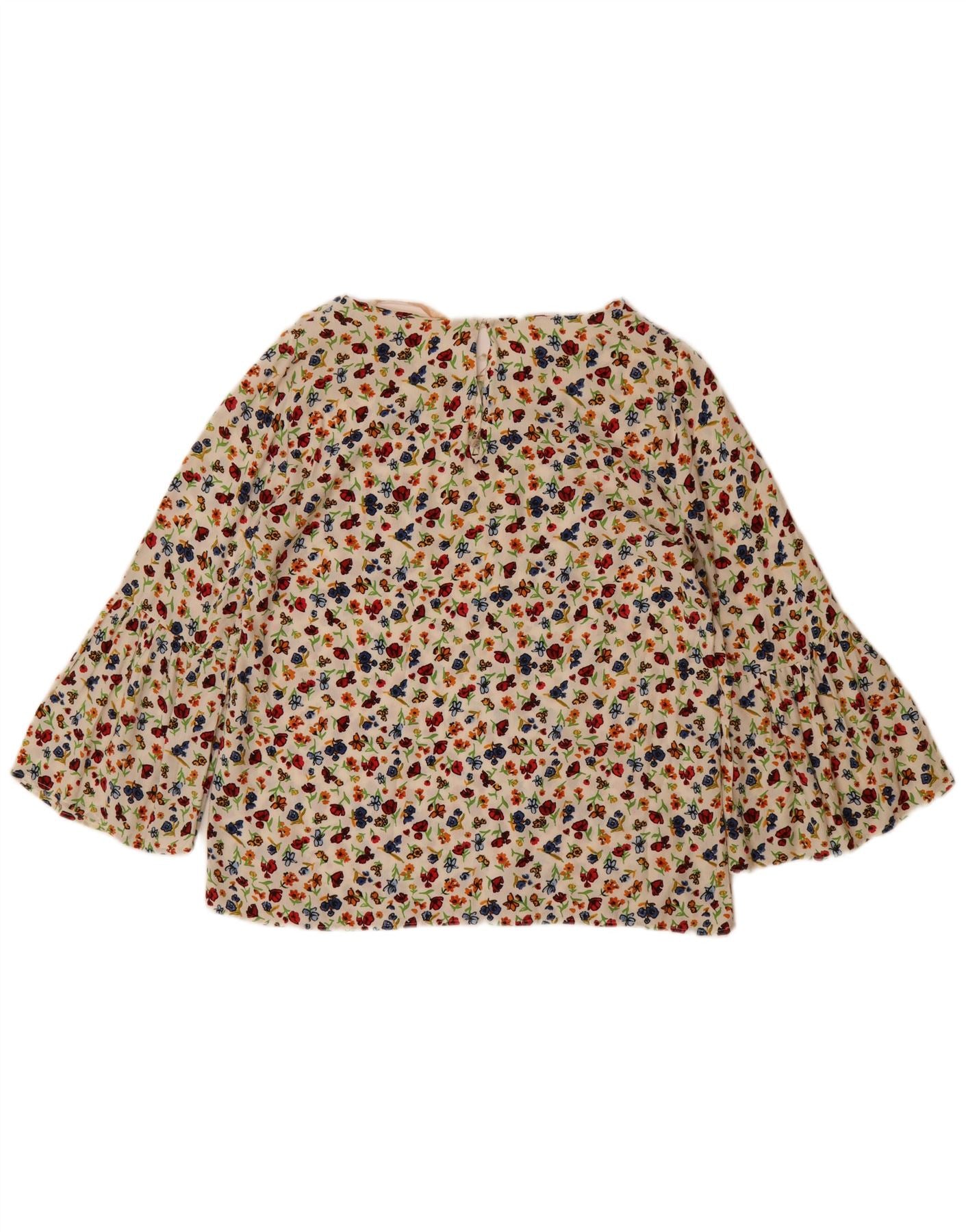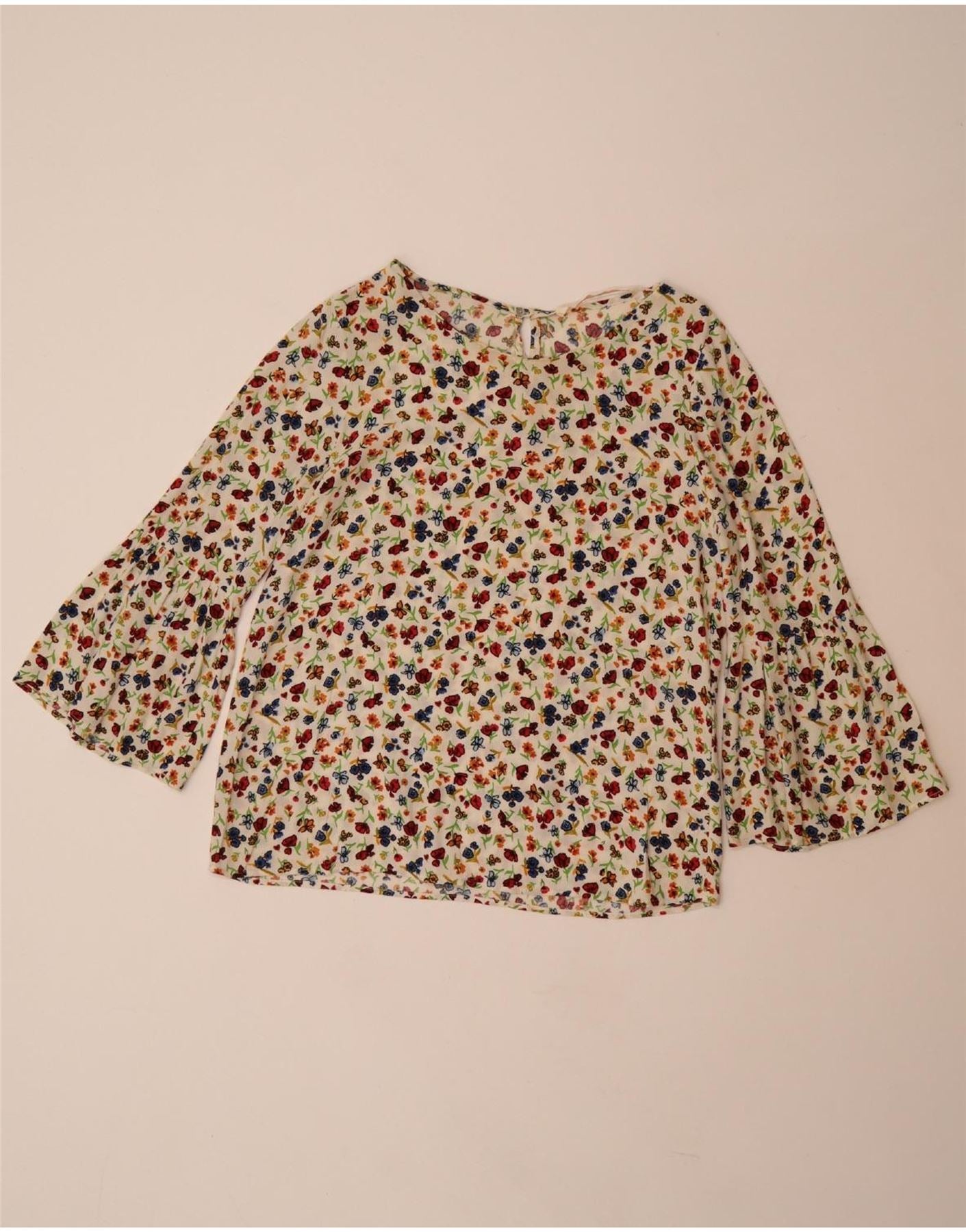 ZARA ženski gornji dio bluze 3/4 rukava UK 10 Small Off White Floral Viskoza
