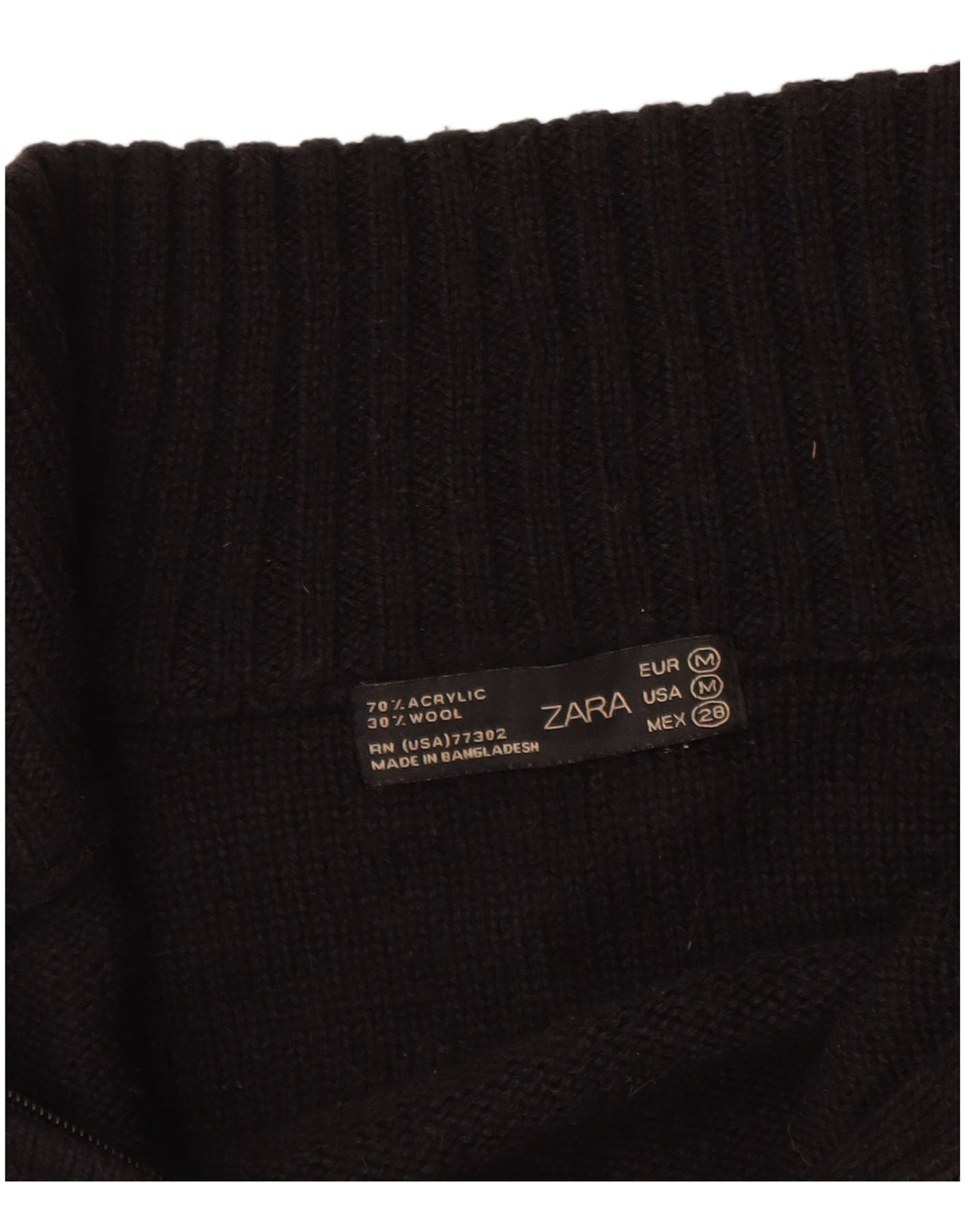 - AI opis: Ovaj Zara ženski džemper izrađen je od mješavine mekog crnog pletiva 70% akrila i 30% vune. Ima visoki ovratnik i potpuno zatvaranje na patentni zatvarač za svestrani stil. Dugi rukavi završavaju urednim manšetama. Pravilan kroj osigurava udobno nošenje. Ovaj klasični komad nudi toplinu i elegantnu siluetu.