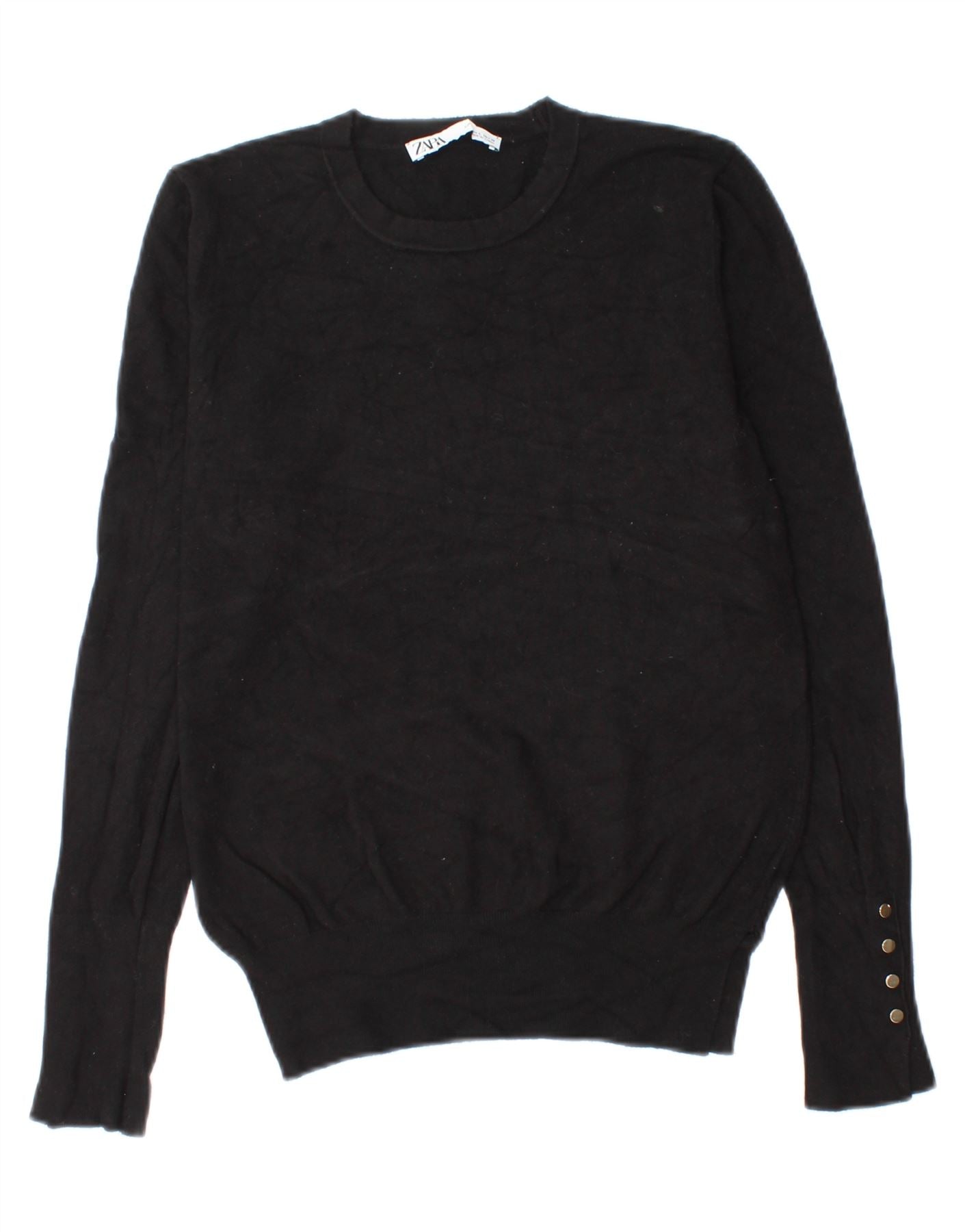 - AI opis: Ovaj Zara ženski džemper s okruglim izrezom izrađen je od meke crne pletene tkanine. Ima klasični okrugli izrez i duge rukave. Uobičajen kroj nudi udobno nošenje. Rukavi s manžetama naglašeni su suptilnim gumbima, dodajući profinjeni dodir. Ovaj dizajn pulovera pruža bezvremenski stil i svestranost za svakodnevnu odjeću.
