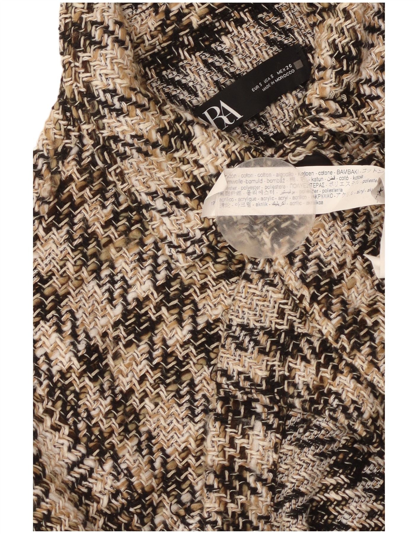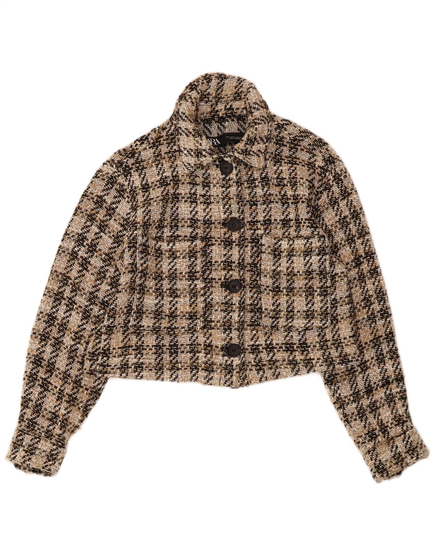 ZARA ženska kratka bomber jakna UK 10 Mala bež karirana pamuk