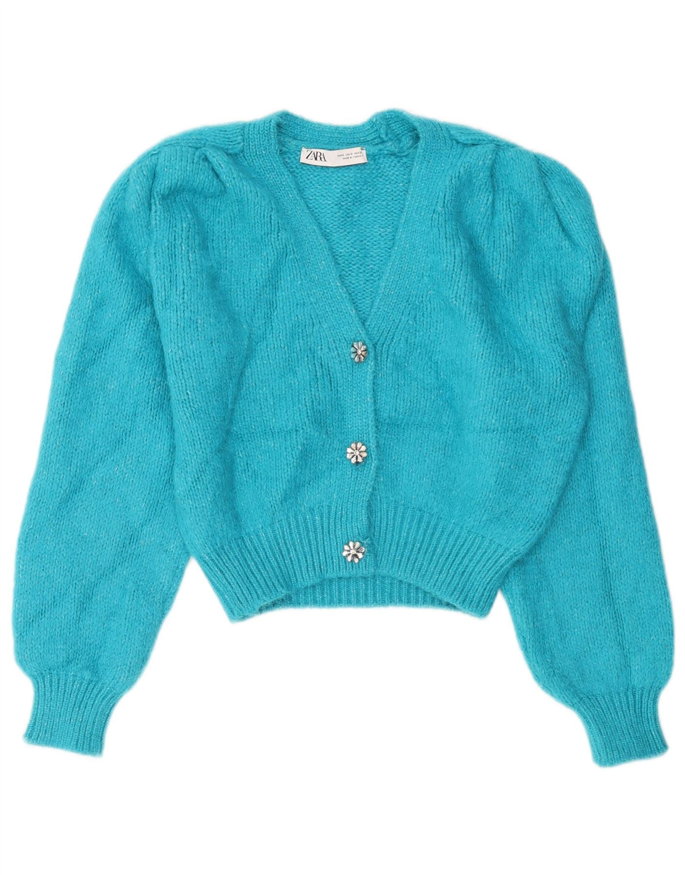 ZARA ženski kratki kardigan pulover UK 10 Mali plavi akril