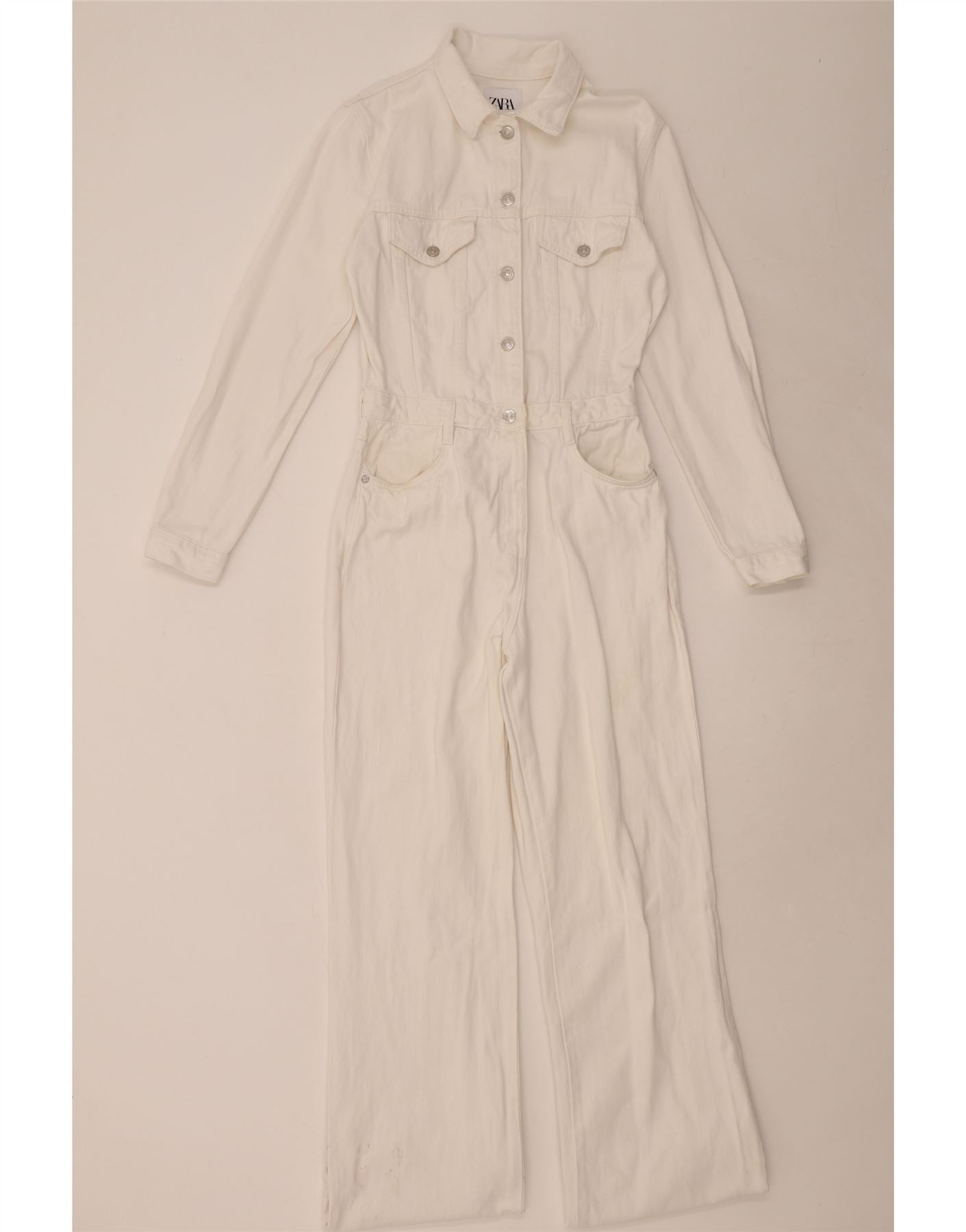 Zara ženski traper kombinezon UK 14 Veliki bijeli pamuk