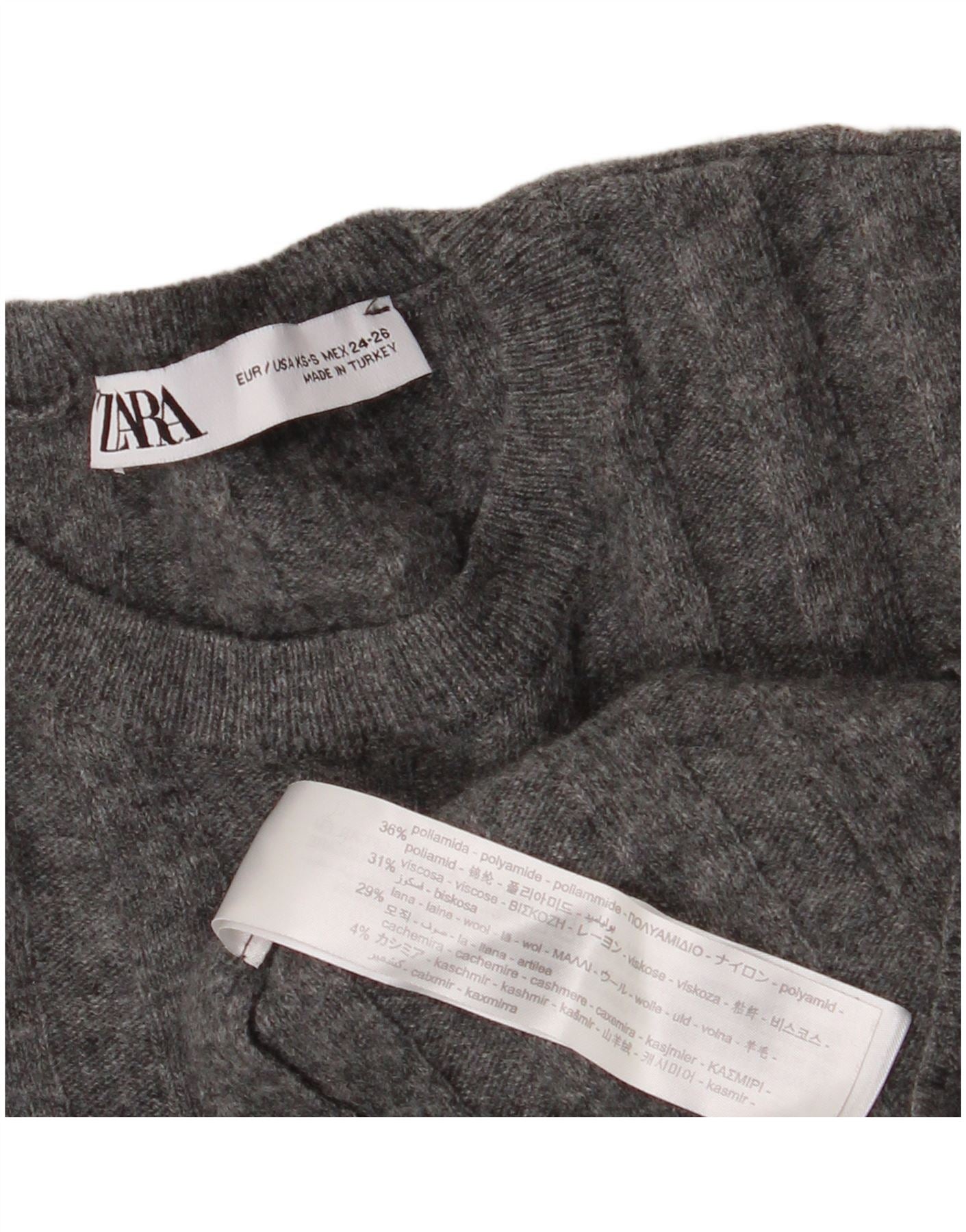 ZARA ženski džemper s okruglim izrezom UK 6 XS sivi poliamid