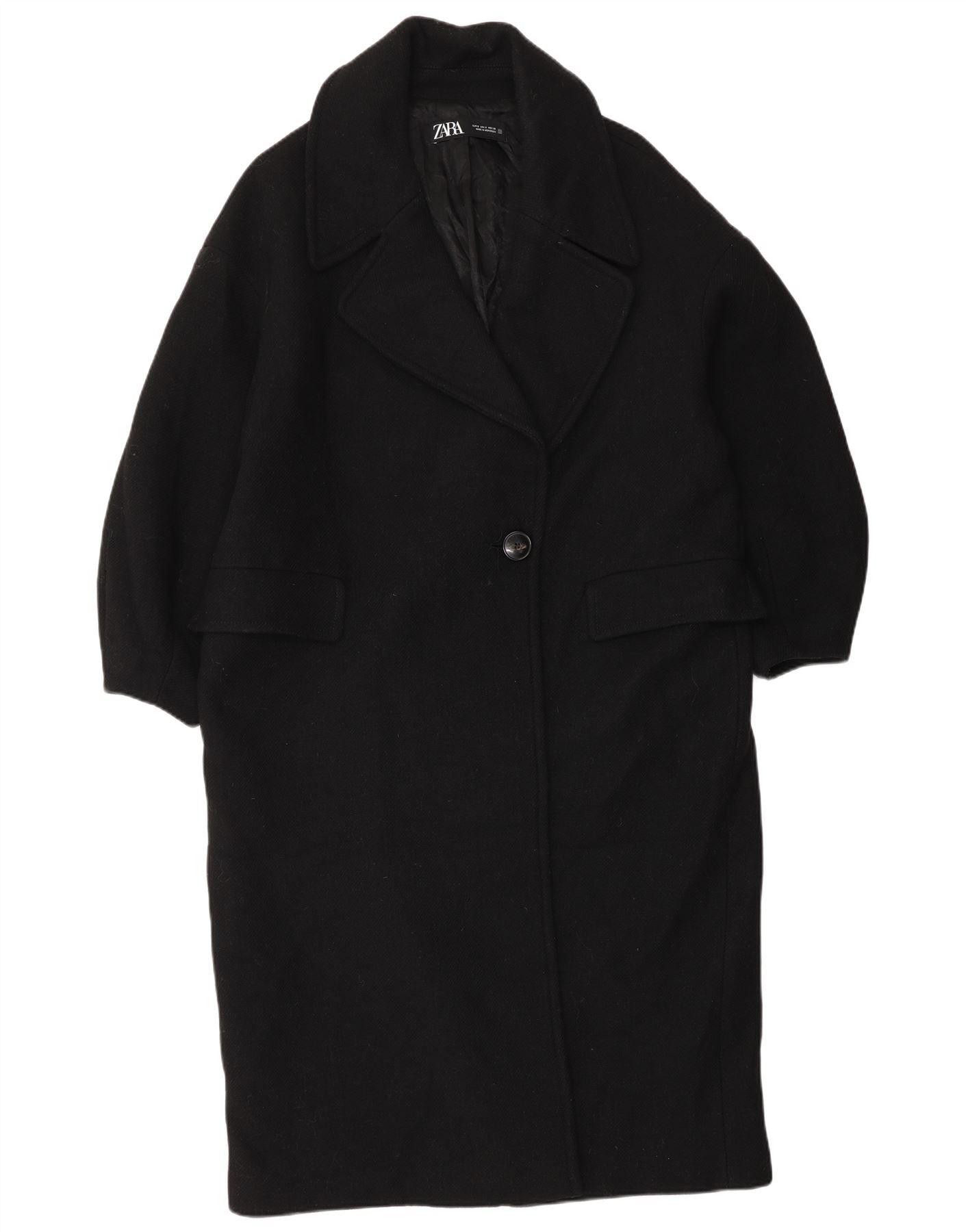 - AI opis: Ovaj Zara ženski kaput izrađen je od luksuzne mješavine crne vune, nudi meku, tkanu teksturu. Ima klasični dekolte s ovratnikom i duge rukave. Opušteni, predimenzionirani kroj daje suvremenu siluetu. Zatvaranje s jednim gumbom osigurava prednju stranu. Praktični džepovi integrirani su u dizajn. Kaput je potpuno podstavljen za dodatnu udobnost i toplinu.