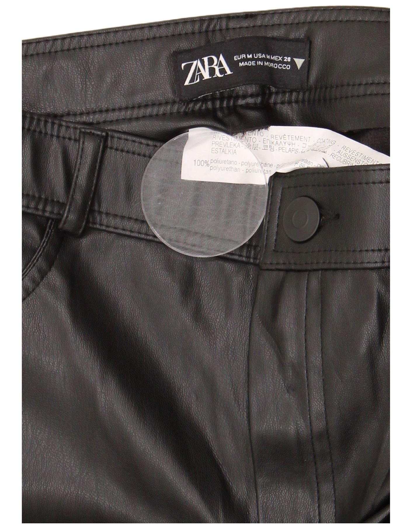 Zara ženske uske hlače od umjetne kože srednje veličine W28 L28 crni poliuretan