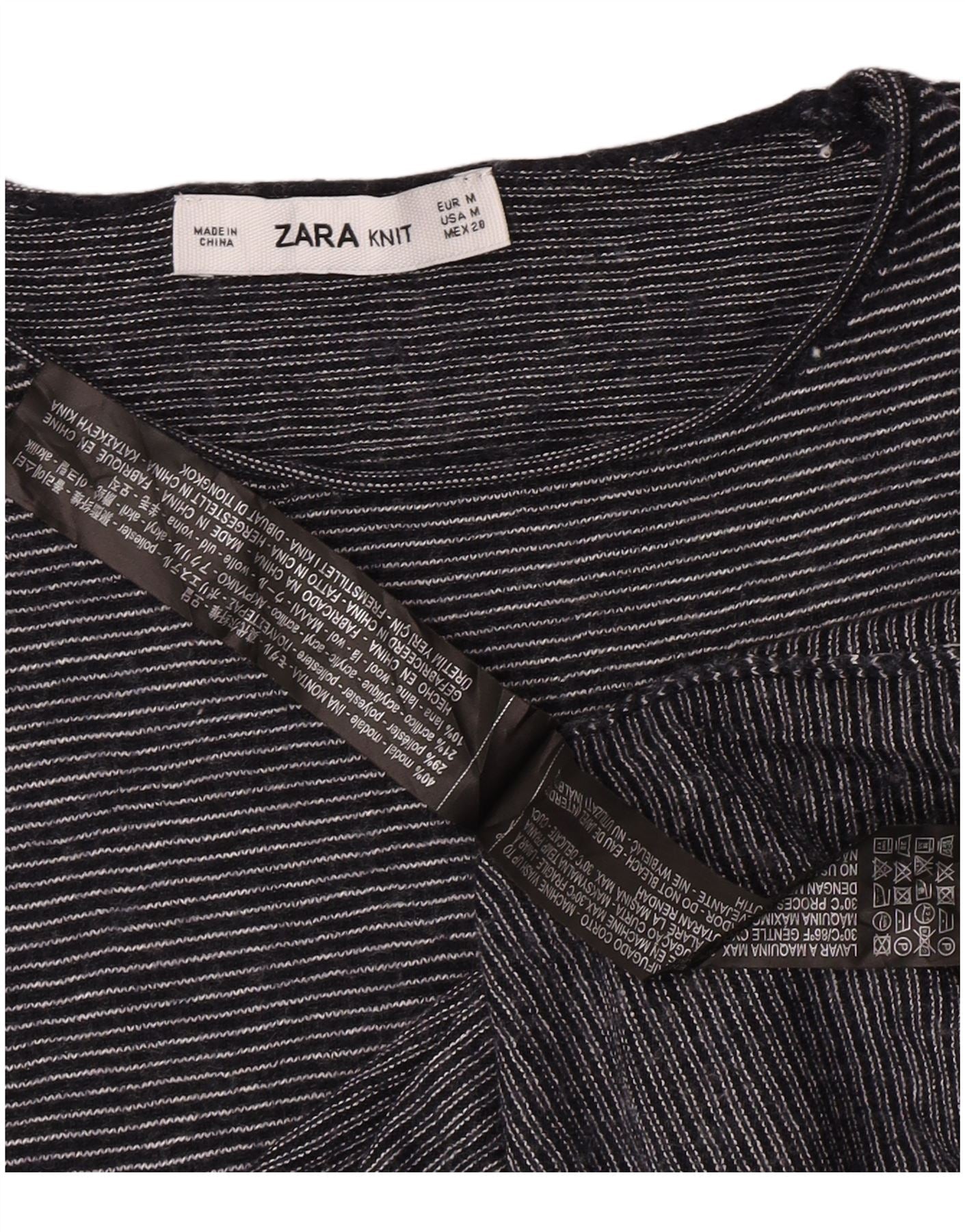 - AI opis: Ovaj Zara ženski gornji dio majice izrađen je od mješavine mekog modalnog pletiva, pružajući lagan i udoban osjećaj. Ima klasični prugasti uzorak u crnoj boji. Okrugli dekolte i kratki rukavi pružaju bezvremensku siluetu. Dizajniran za uobičajeno pristajanje, osigurava lakoću nošenja. Ovaj stil pulovera savršen je za svakodnevnu udobnost i svestrani stil.