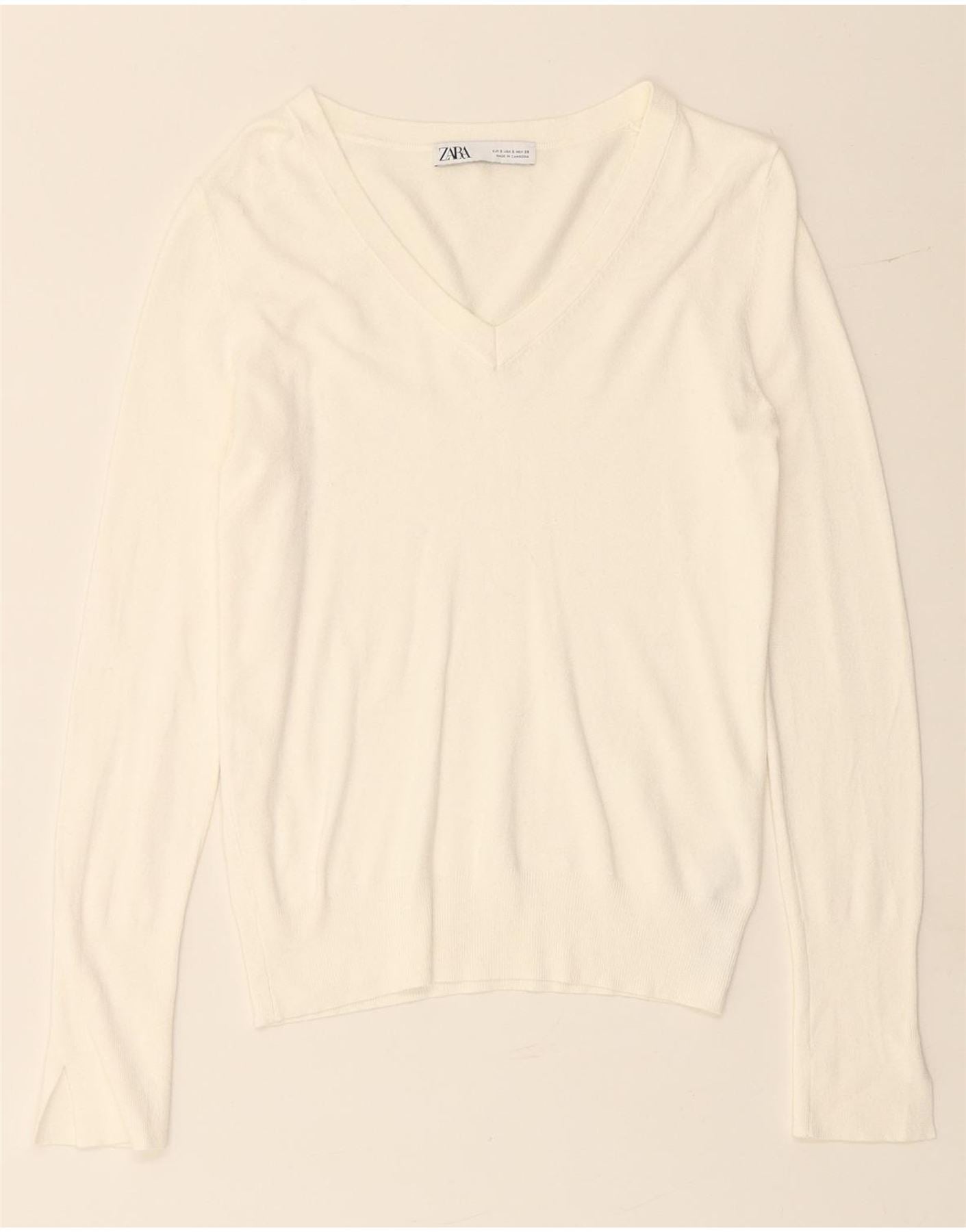 ZARA ženski džemper s V-izrezom UK 10 Mala bijela viskoza
