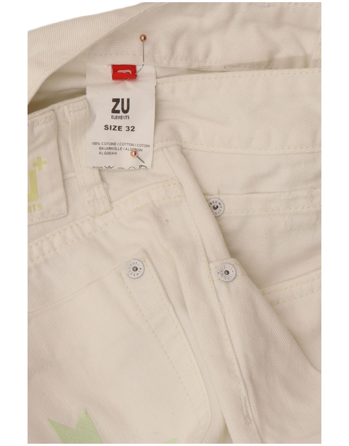 ZU ELEMENTS Ženske ravne traperice s oskudima W32 L34 Bijeli pamuk